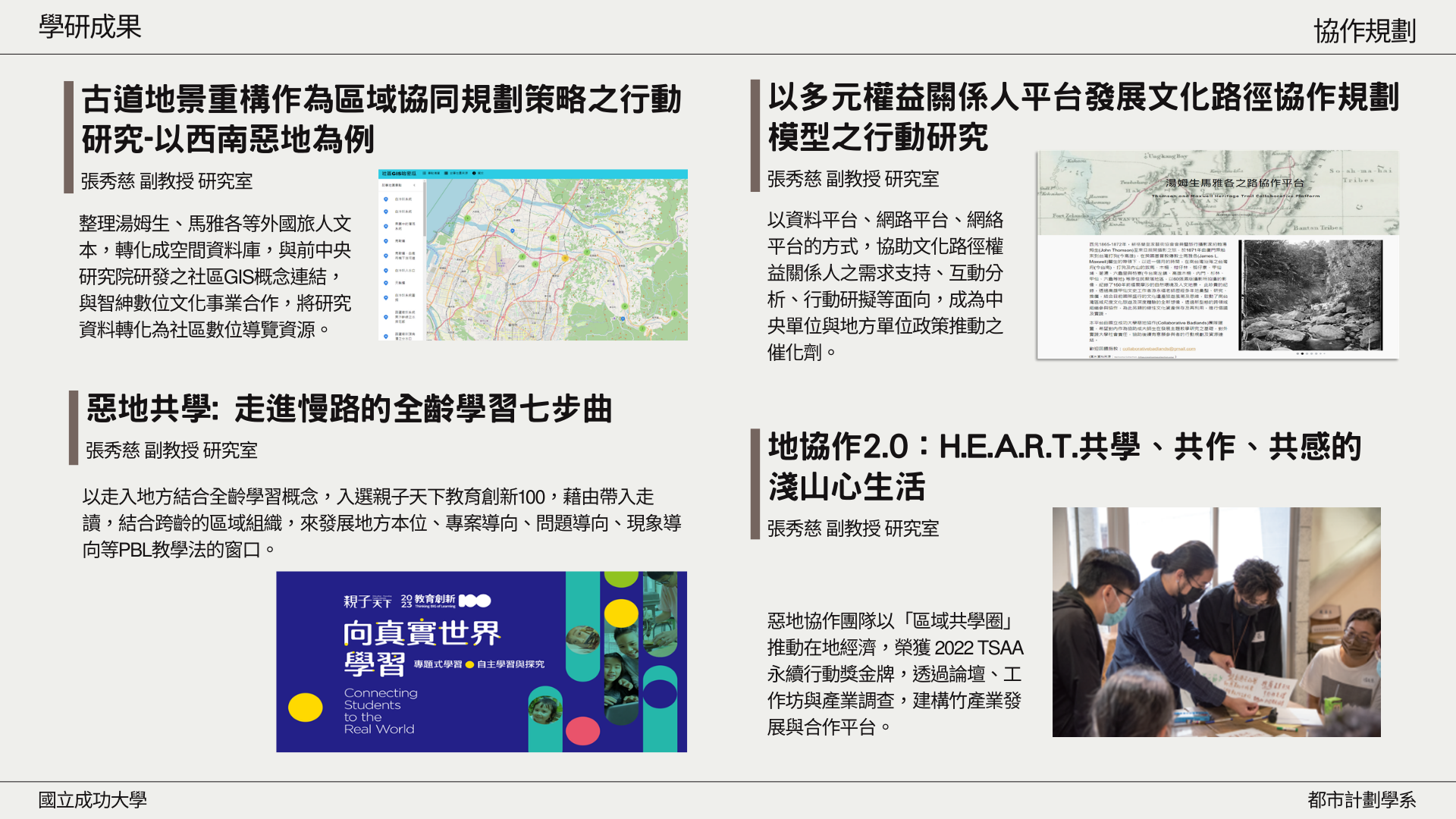 地址:70101 台南市大學路1號 都市計劃學系