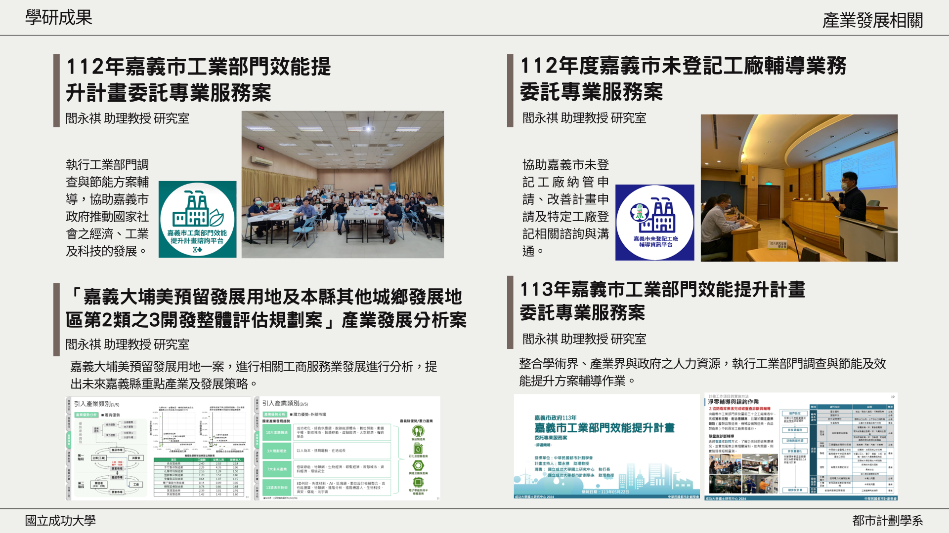 | 110 | 閻永祺 | 氣候變遷下綠色產業發展範疇、空間區位與區域經濟發展之整合研究 | 科技部 | 2021/08/01~2022/01/31 |