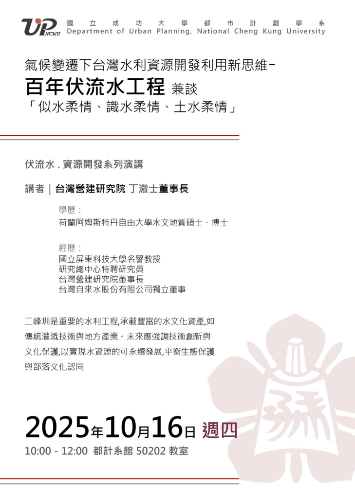 地址:70101 台南市大學路1號 都市計劃學系